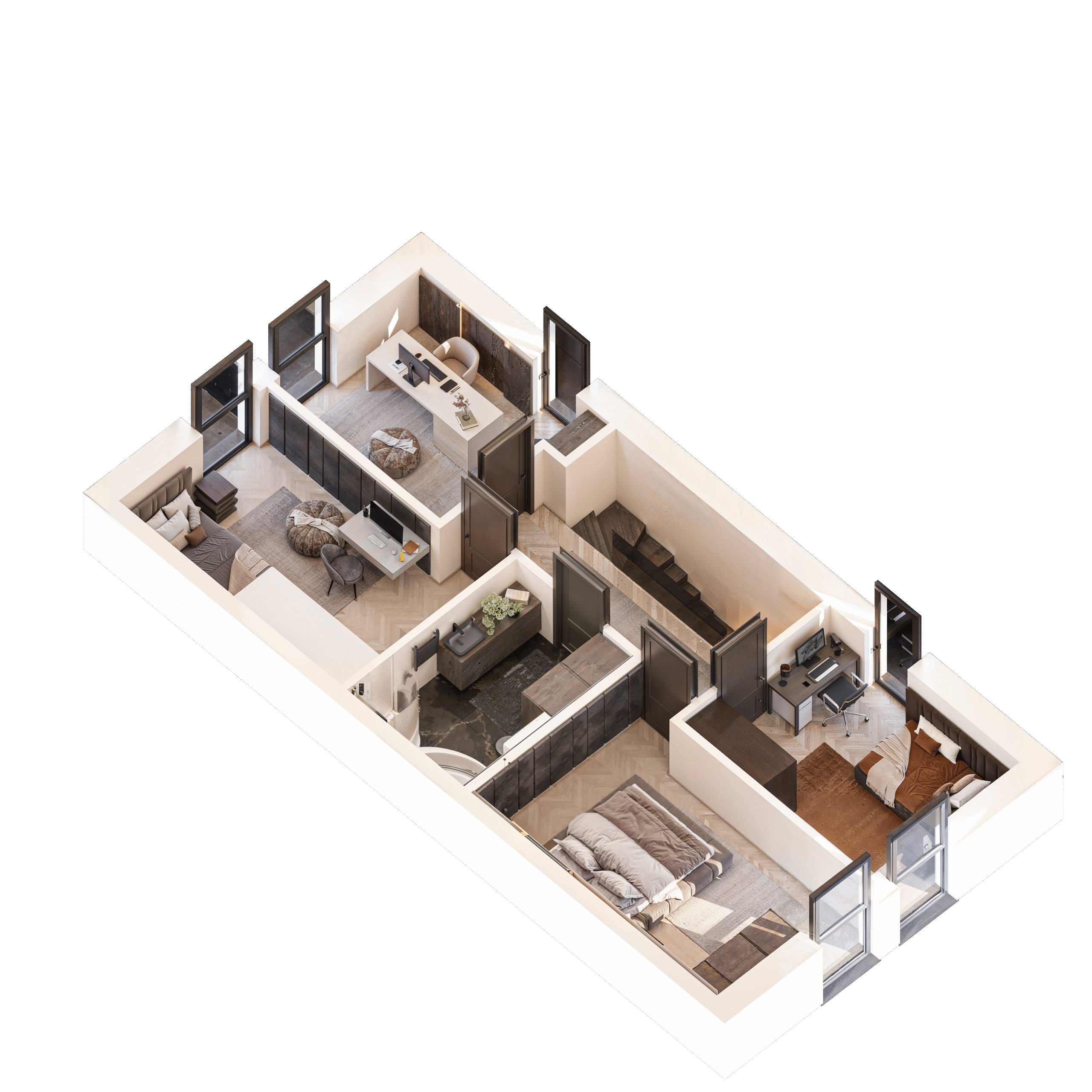 - cztery sypialnie i dwie łazienki,